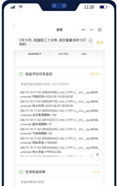利用自然语言交互,让定义交易信号或筛选条件变得直观而简单,只需简单描述,如“5月15日,收盘前三十分钟,成交量最多的10只标的”,我们的系统即可智能识别在特定时间段内流动性最高或交易最活跃的证券。